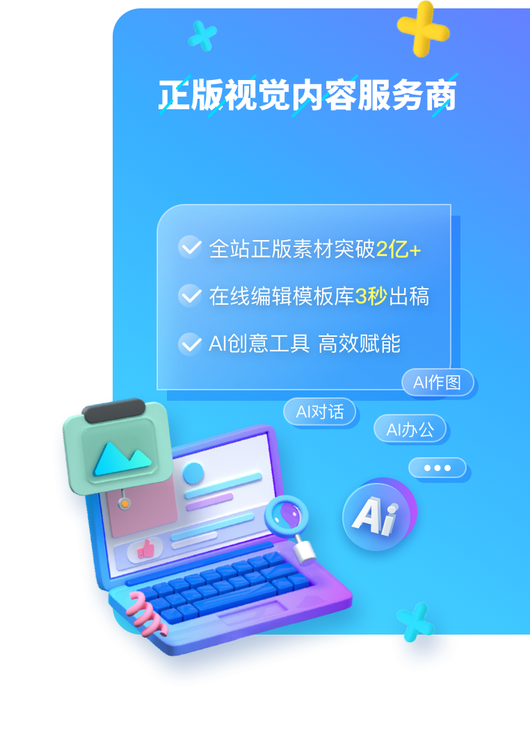 專屬定制一站式企業(yè)視覺服務(wù),不限主體、用量、曝光及侵權(quán)賠付,支持全用途授權(quán)